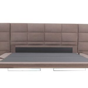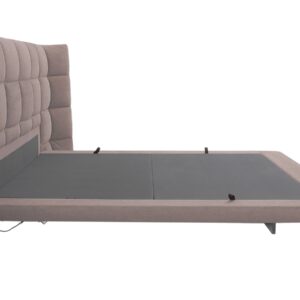 The Chiton bed has a modern and sophisticated design, upholstered with Turnadot textile in a neutral shade of gray. The tall and ample headrest is decorated with a quilted pattern, providing an elegant look and added comfort. The lighting system is under the bed and uses a motion detector for activation. The ominer is equipped with a manual lifting mechanism, facilitating access to the generous storage space below. The edges of the bed are wide and padded, giving a luxurious and refined air. This model is ideal for contemporary interiors, combining premium aesthetics with practical functionality.
